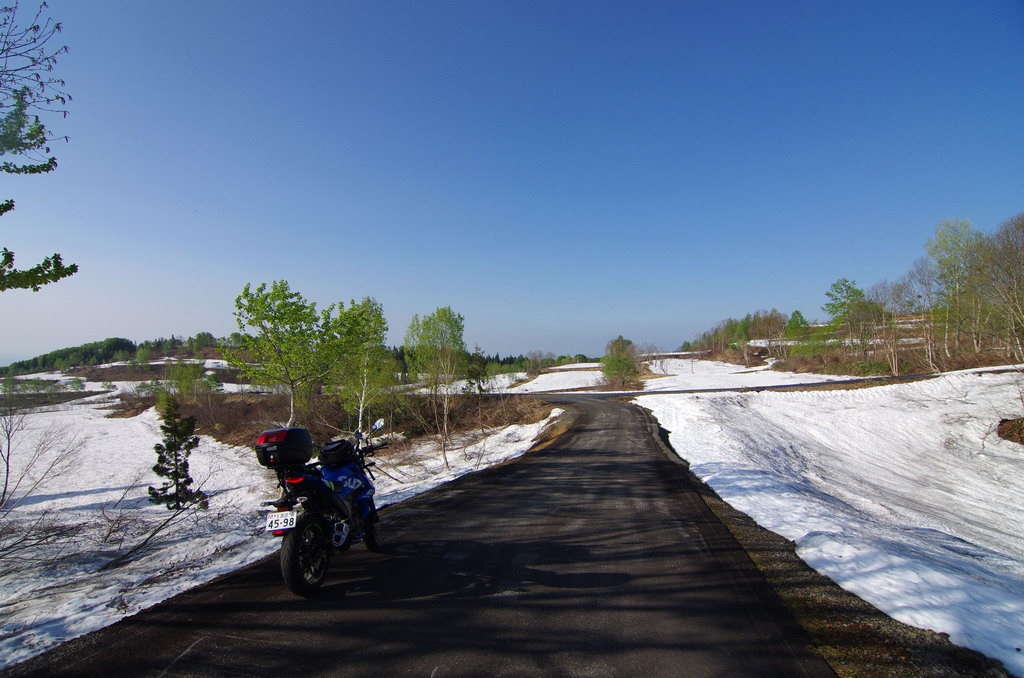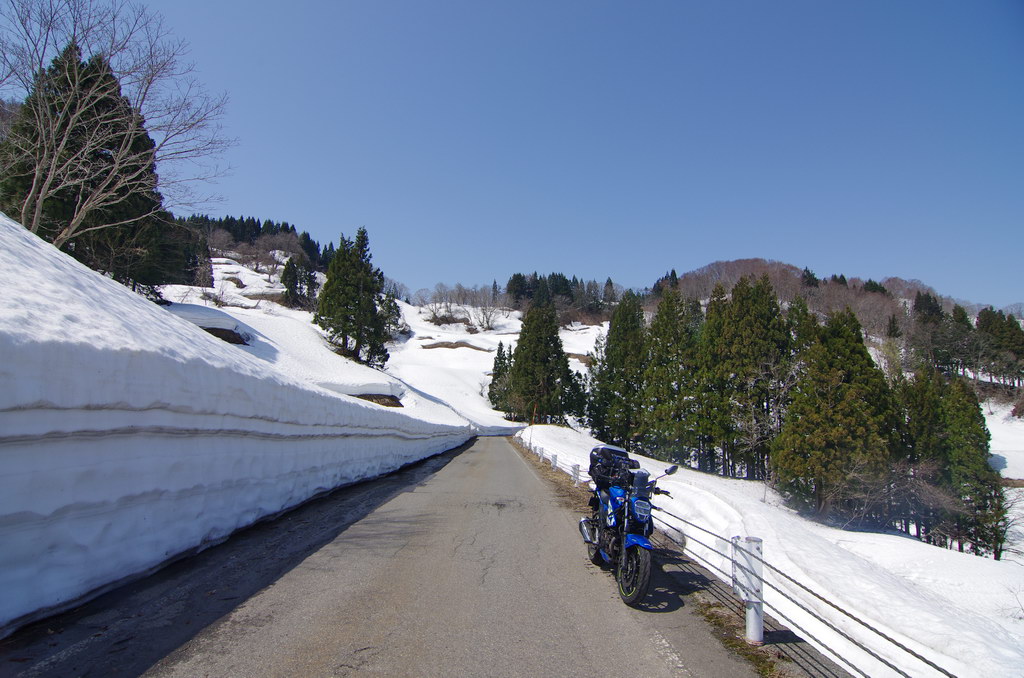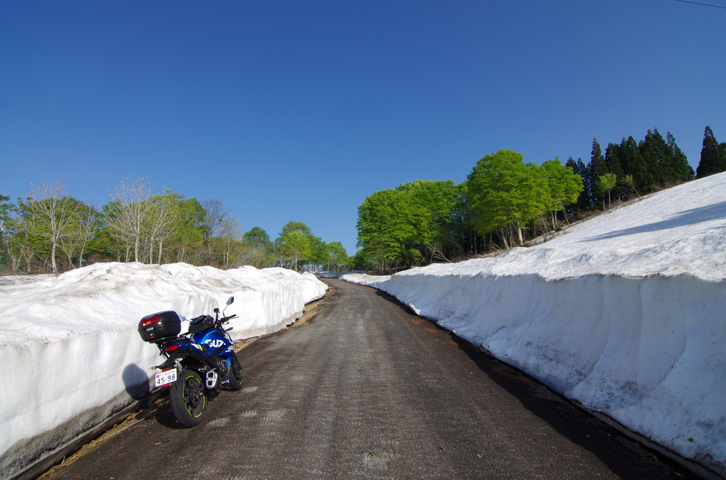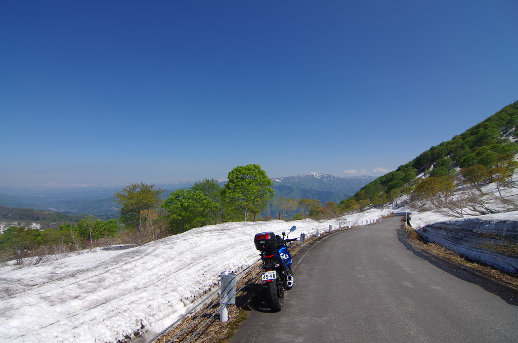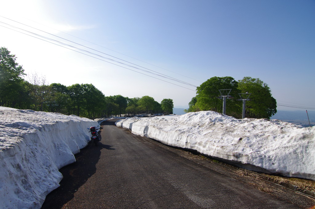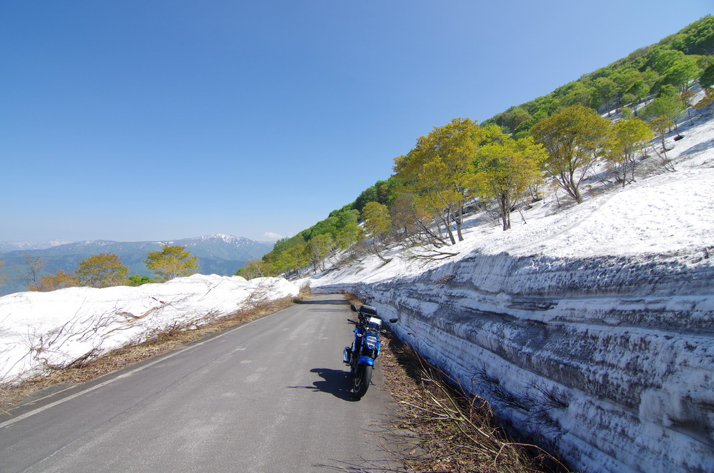 今回、意外にも酷道区間に冬季通行止め表示が無かったので突っ込んでみたのですが(去年まで工事で通れなかった)、まだまだ道は狭いものの、改良が進んでそこそこ走りやすい道へと変化していました。 コシヒカリの里の棚田は、まだまだ雪に覆われていました。 元マウンテンパーク津南スキー場へのアクセス路から。 2月にアルトで訪れた所ですが、まだ2m位の積雪がありました。 みゆきのラインはこんな感じ。 ☆☆☆ 宿の方は駐輪場の改良工事等をおこないました。 全線開通前のビーナスライン 4月9日にビーナスラインの冬季通行可能区間を偵察してきました。山に囲まれて雪雲がブロックされるため降雪量は少なめ。実はビーナスライン沿線より、栄村や津南町の方が遥かに積雪量が多かったりします。2025年のビーナスライン全線開通は4月22日でした。 ☆☆☆ 信州新町から旧大岡村にかけて、県道390、12号線 5月8日、前年からの宿題だった信州新町・大川展望堂付近を訪ねてみました。北アルプスカッコイイ! 信州新町から旧大岡村に掛けての県道390号線や県道12号線アルプス展望道路とその周辺を探索しました。 5月のこの辺りはどこを走っても素晴らしい景色! ☆☆☆ 妙高笹ヶ峰〜飯山市関田峠(の行ける所まで)〜グリーンピア津南スキー場上の野菜畑 5月13日、豊田飯山IC→斑尾高原→妙高高原と走りました。里山の新緑と妙高山のコントラストが素晴らしい。 せっかく雪が多い年なので笹ヶ峰を目指しました。 笹ヶ峰の雪解けは早めでした。 更なる豪雪地を目指して、飯山から県道95号線関田峠に向かいました。勿論県境となる峠付近はまだ冬季通行止めですが、それだけ積雪が多いはず。 冬季通行止め地点に到着。5月中旬とは思えないほどの積雪でした。残雪と新緑のコントラストが素晴らしい。 実はここまでは例年GW初日に除雪開通させることが多いのです。自分は仕事で無理ですが、雪の多い年に目指してみてはいかがでしょうか。 その後はR403等を探索しました。 栄村の県道407号線を初めて走りましたが特筆すべき点は無いものの意外に良かったです。 グリーンピア津南スキー場と、その上部にある高原野菜畑を訪ねてみました。農作業の為にゲレンデを突っ切って除雪がされています。 何故かスキー場より上にある高原野菜畑。この日も農家の方々が除雪と農作業の準備をされていました。しかし5月13日に本州の畑にこれだけ残雪があるとはビックリです。山岳地じゃなくて畑ですからね。 今までグリーンピア津南は町の所有でしたが、来年は民間に売却する予定とのこと。果たしてこの道も含めてどうなるのでしょう? 季節は春から初夏へ・・・。 |