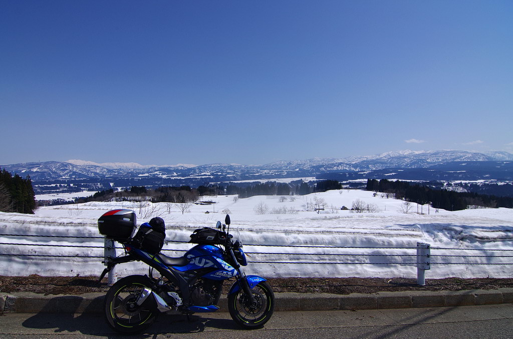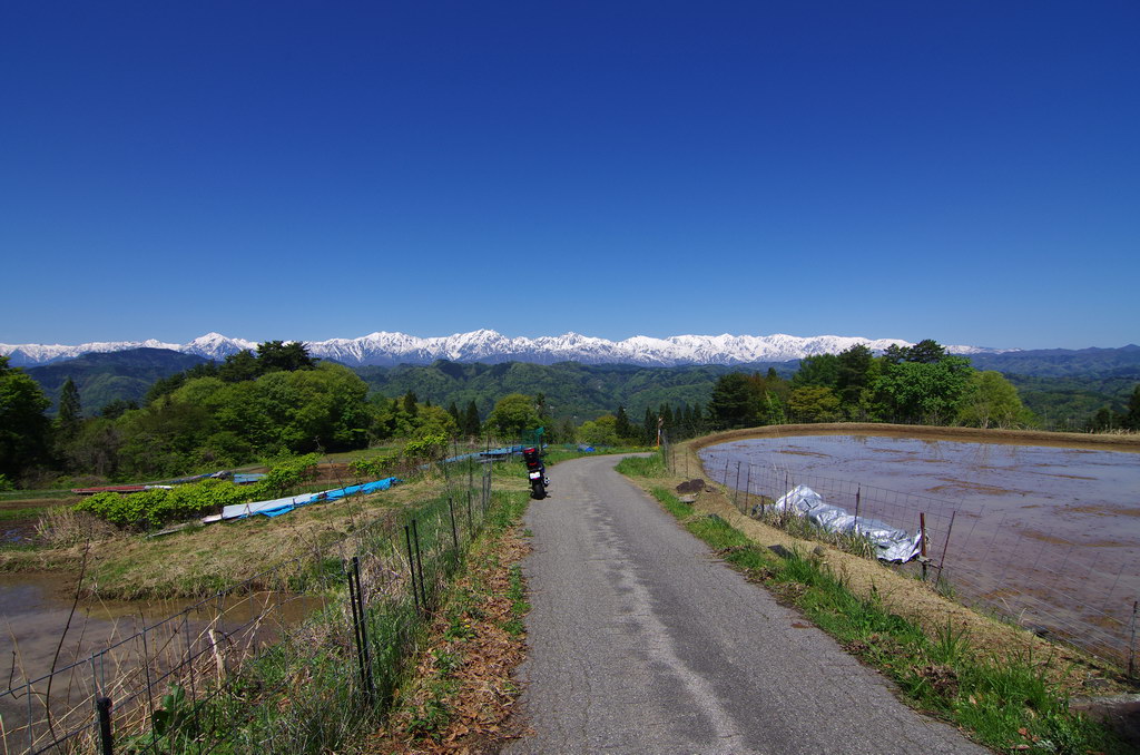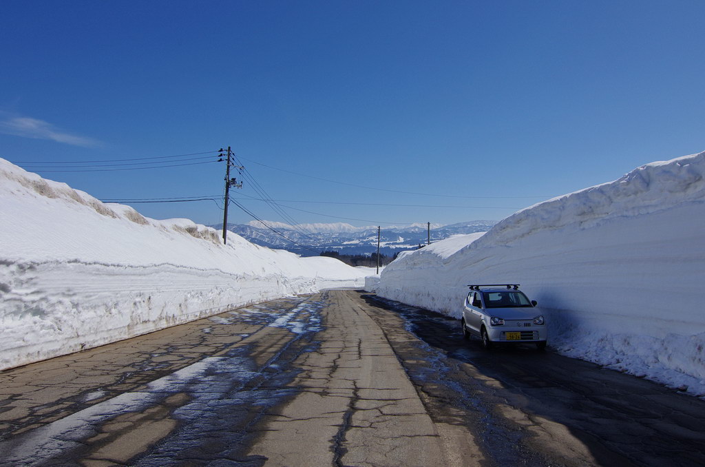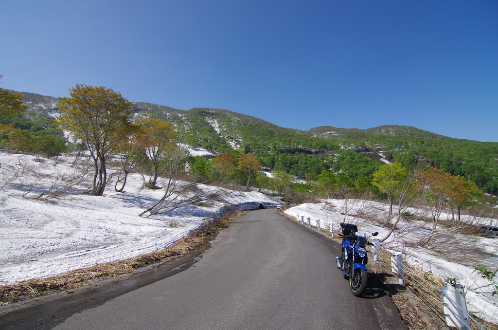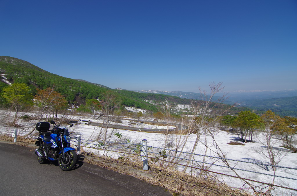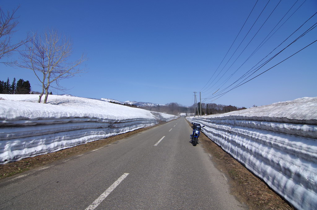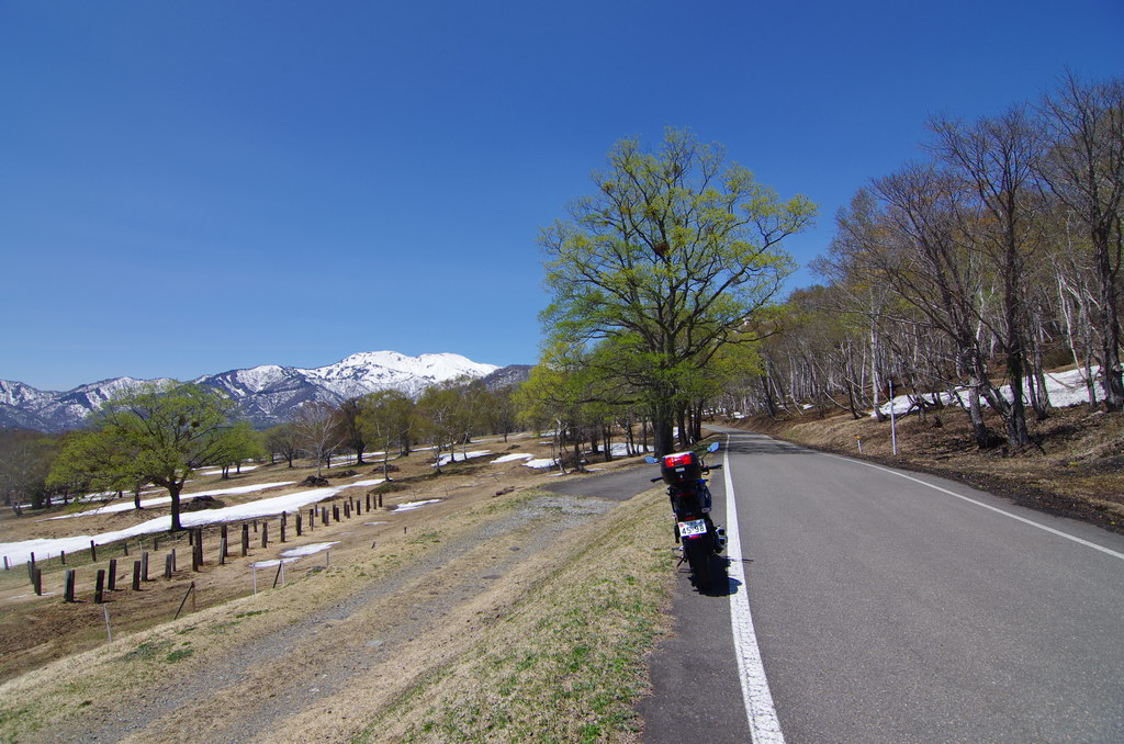 今回、意外にも酷道区間に冬季通行止め表示が無かったので突っ込んでみたのですが(去年まで工事で通れなかった)、まだまだ道は狭いものの、改良が進んでそこそこ走りやすい道へと変化していました。 コシヒカリの里の棚田は、まだまだ雪に覆われていました。 元マウンテンパーク津南スキー場へのアクセス路から。 2月にアルトで訪れた所ですが、まだ2m位の積雪がありました。 みゆきのラインはこんな感じ。 ☆☆☆ 宿の方は駐輪場の改良工事等をおこないました。 全線開通前のビーナスライン 4月9日にビーナスラインの冬季通行可能区間を偵察してきました。山に囲まれて雪雲がブロックされるため降雪量は少なめ。実はビーナスライン沿線より、栄村や津南町の方が遥かに積雪量が多かったりします。2025年のビーナスライン全線開通は4月22日でした。 ☆☆☆ 信州新町から旧大岡村にかけて、県道390、12号線 5月8日、前年からの宿題だった信州新町・大川展望堂付近を訪ねてみました。北アルプスカッコイイ! 信州新町から旧大岡村に掛けての県道390号線や県道12号線アルプス展望道路とその周辺を探索しました。 5月のこの辺りはどこを走っても素晴らしい景色! ☆☆☆ 妙高笹ヶ峰〜飯山市関田峠(の行ける所まで)〜グリーンピア津南スキー場上の野菜畑 5月13日、豊田飯山IC→斑尾高原→妙高高原と走りました。里山の新緑と妙高山のコントラストが素晴らしい。 せっかく雪が多い年なので笹ヶ峰を目指しました。 笹ヶ峰の雪解けは早めでした。 更なる豪雪地を目指して、飯山から県道95号線関田峠に向かいました。勿論県境となる峠付近はまだ冬季通行止めですが、それだけ積雪が多いはず。 冬季通行止め地点に到着。5月中旬とは思えないほどの積雪でした。残雪と新緑のコントラストが素晴らしい。 実はここまでは例年GW初日に除雪開通させることが多いのです。自分は仕事で無理ですが、雪の多い年に目指してみてはいかがでしょうか。 その後はR403等を探索しました。 栄村の県道407号線を初めて走りましたが特筆すべき点は無いものの意外に良かったです。 グリーンピア津南スキー場と、その上部にある高原野菜畑を訪ねてみました。農作業の為にゲレンデを突っ切って除雪がされています。 何故かスキー場より上にある高原野菜畑。この日も農家の方々が除雪と農作業の準備をされていました。しかし5月13日に本州の畑にこれだけ残雪があるとはビックリです。山岳地じゃなくて畑ですからね。 今までグリーンピア津南は町の所有でしたが、来年は民間に売却する予定とのこと。果たしてこの道も含めてどうなるのでしょう? 季節は春から初夏へ・・・。 |