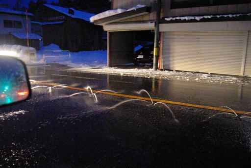 ![]() 雪に閉じ込められたらどうしようと焦っていた私に 天国のようにみえたのが、この消雪パイプからの散水です。 街中に入ったら路面の雪が一気に無くなりました。 雪国を忘れさせる確かなグリップが復活。夏のように動けます。 |