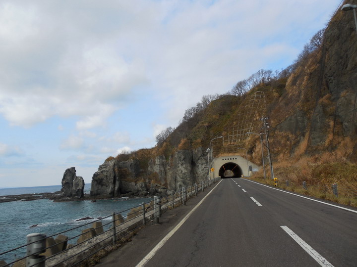 あの岬の向こうが、今まで通行出来なかった区間です。北海道本土の再西端になります。