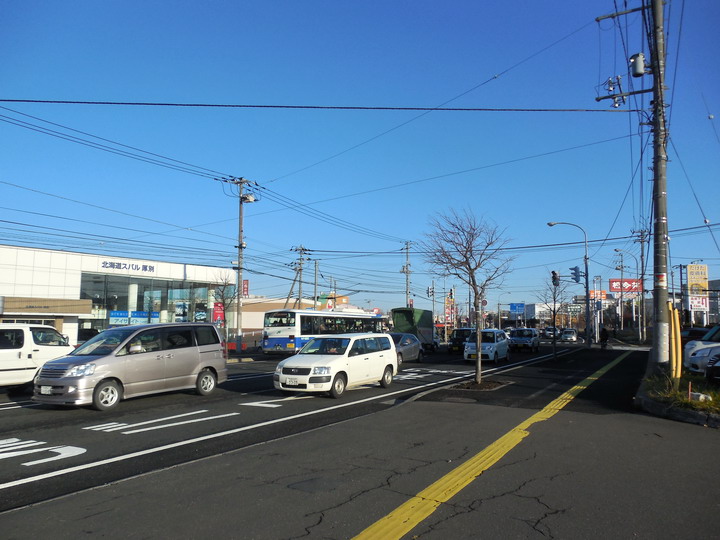 翌朝の快活クラブ厚別前の国道12号線です。渋滞中です。札幌市の人口は194万人で、実は2位大阪市268万人、3位名古屋市227万人に次ぐ市町村人口4位。余りバイクで走りたくない感じです。もし北海道初めての方がいらっしゃったら、最初のツーリングでは通らないことをお勧めします。札幌だけなら飛行機で安く行ける時代ですし。