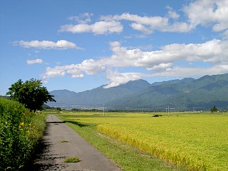 再び、広域農道で伊那谷を北上していく。山並みは尽きることなく延々と続いていて、空はますます青く澄み渡り、稲穂は黄色味を帯びて輝きをましていた。そんな景色の中で、バイクを走らせるオレ。なんて幸せなんだろう。