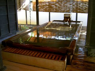 ご主人は代々、お殿様が入る御殿湯の湯守をされていた家柄だそうです。旧家だけあって、掛け軸や骨董品が展示されています。 ここでロンヤス会談が開かれちゃってもおかしくないような、そんな雰囲気さえ感じられます(古い話ですみません)。庭の松はお殿様お手植えだとか。 |