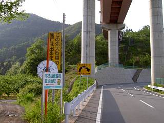 山梨県は積極的に広域農道建設を推進している自治体のようだ。大型トラクターの導入や、大型トラックによる輸送ルート改善がその目的らしいが・・・。ループ橋入口の看板には「この先大型車の通行は出来ません」の看板があった。何の為の高規格農道なのか・・・?